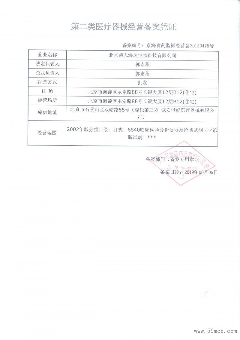 第二類醫(yī)療器械經(jīng)營備案憑證