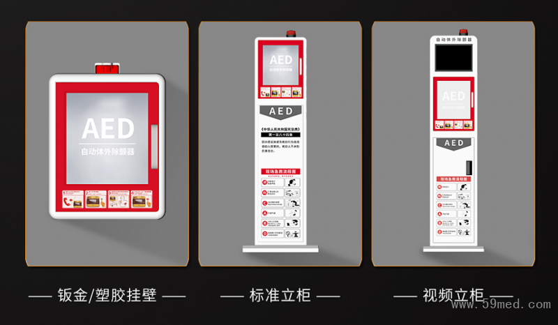 產(chǎn)品配套:自動體外除顫器(AED除顫儀)、電極片、電池、壁掛柜