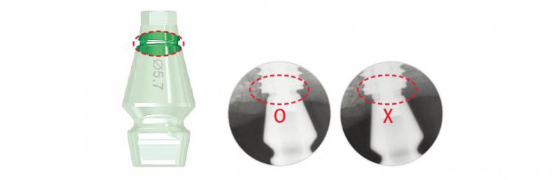 ☆小提示:可通過(guò)X光片確認(rèn)代替體與印模轉(zhuǎn)移桿是否連接正確。